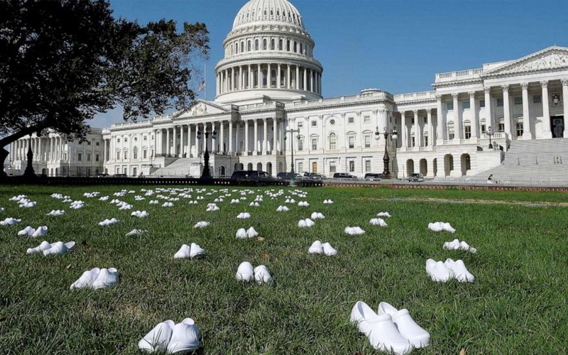 National Nurses United (NNU) display 164 white clogs shoes outside the US Capitol to honor the more than 160 nurses who have lost their lives from COVID-19 in the United States, and to demand the Senate act swiftly to protect nurses on the frontlines… moreNational Nurses United (NNU) display 164 white clogs shoes outside the US Capitol to honor the more than 160 nurses who have lost their lives from COVID-19 in the United States, and to demand the Senate act swiftly to protect nurses on the frontlines in Washington, DC, July 21, 2020.Olivier Douliery/AFP via Getty Images
